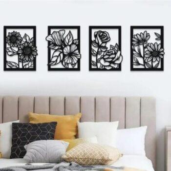 4 Set Flower in Frame Wooden Wall Decor | 4 Panel Flowers Wall Hangings (FIF)