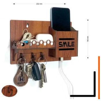 3 Hocks Wooden Wall Shelf with Mobile Holder